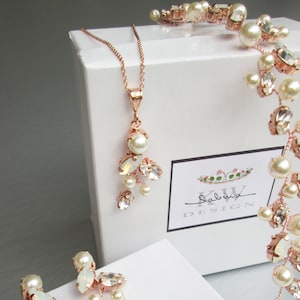 Delicate floral Premium European Crystal jewelry set, Crystal opal and pearl jewelry set, Wedding jewelry, Crystal and pearl bridal jewelry