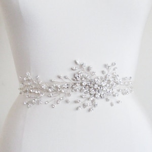Elegant bridal sash beautifully handmade in sheer silk organza trimmed with a delicate pearl stitch. When tied this sash will create a bouncy bow in the back of your dress accompanied with long streamers. The ultimate bridal statement piece. Shown in the photos in white silk organza.