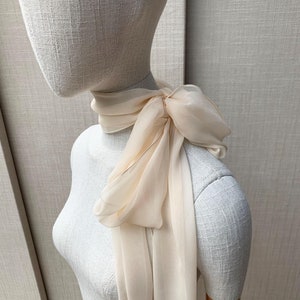 The seller Sabina was responsive, helpful, and went above-and-beyond. We received a custom 125" light blue silk chiffon neck scarf that felt soft and luxurious. It was the right size, with a modern luxury style, and it perfectly paired with my dress for a bridal event ahead of the big day.