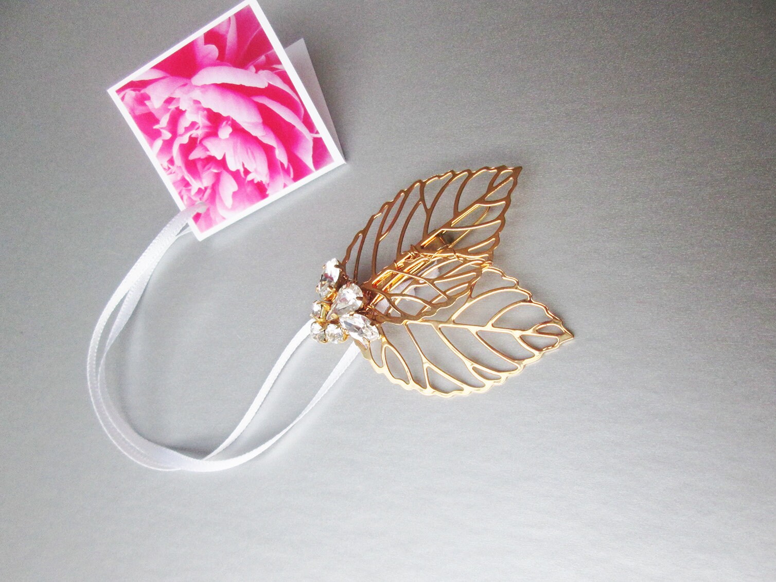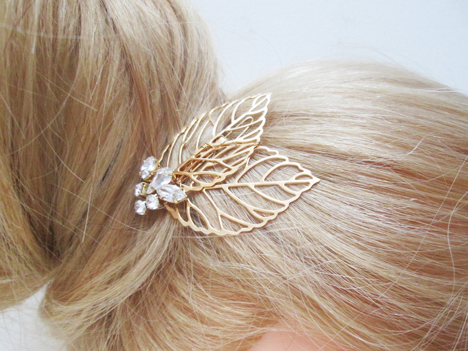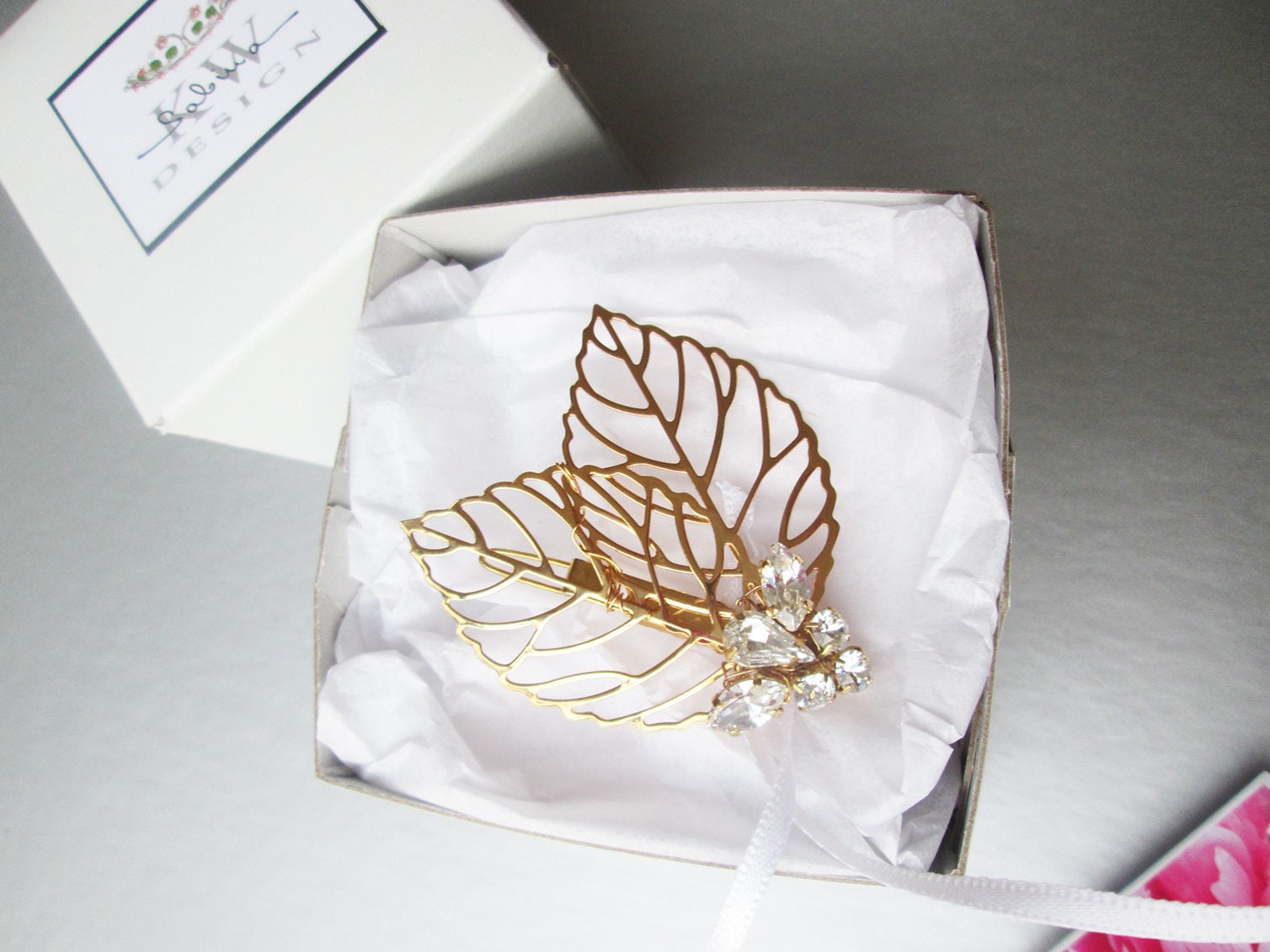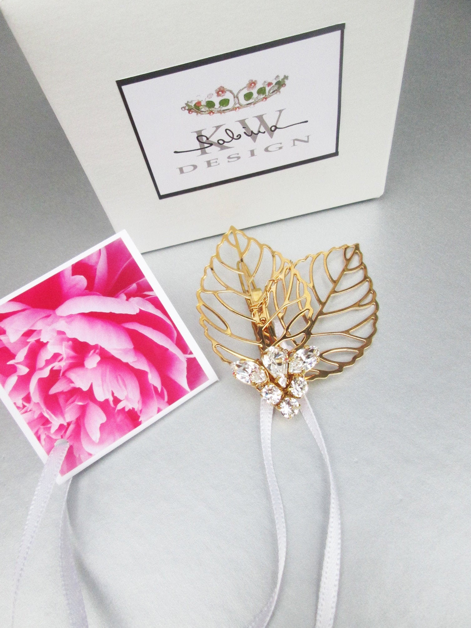 This lovely hair clip is made with the Premium European Crystal and feature delicate cut out pattern leaves. It measures 2 1/4" long and 1 3/4" wide. Available in gold or silver finish.