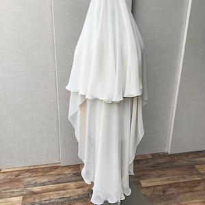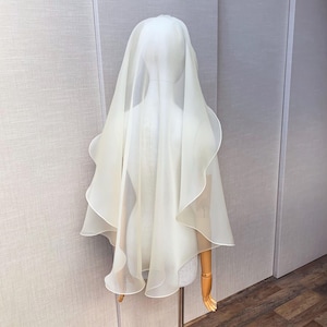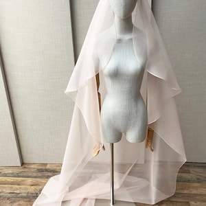 This luxurious bridal veil is so delicate and flowy. Beautifully hand-made with 100% silk sheer organza. The length of the veil in the first photo measures 42". The veil is attached to a metal comb for easy positioning in your hair. Shown in the photos in ivory. If you would like to order the swatches of the silk organza colors please take a look at the listing below: