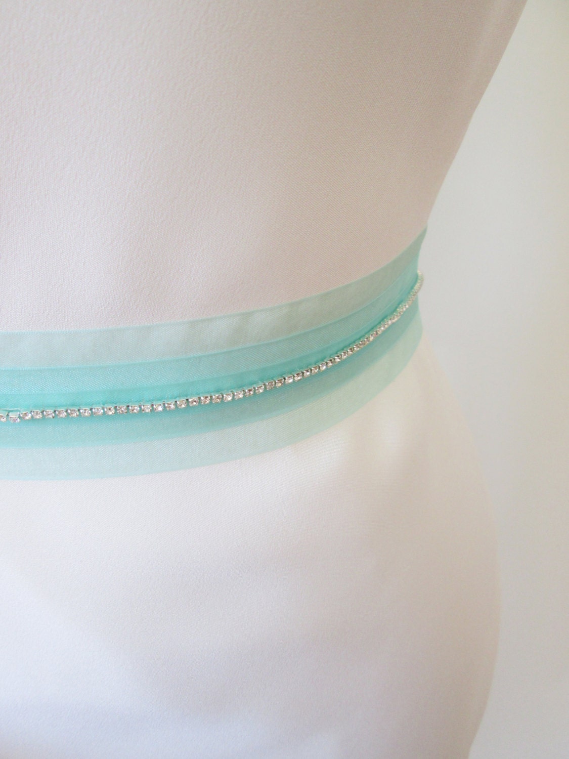 Aqua Blue Bridal Belt: Crystal Organza Ribbon Wedding Sash