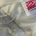 arrived as described. it was more beautiful in person. had instructions to fix wrinkles in shipping process. Wedding is not for a while, but you can tell the handcraft work was made to last!