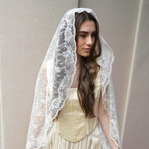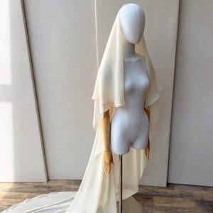 This elegant simple drop veil is made with fine quality tulle trimmed with silky satin ribbon. This veil can be worn with the blusher or flipped back. It is secured in your hair with the comb on top of your head. Available in White, Off white or Ivory tulle with the matching color ribbon. The veil shown in the photos measures 78" long from the hair comb to the bottom of the veil while the blusher measures 30" long. Shown in the photos in White color choice. Available in a variety of length options.