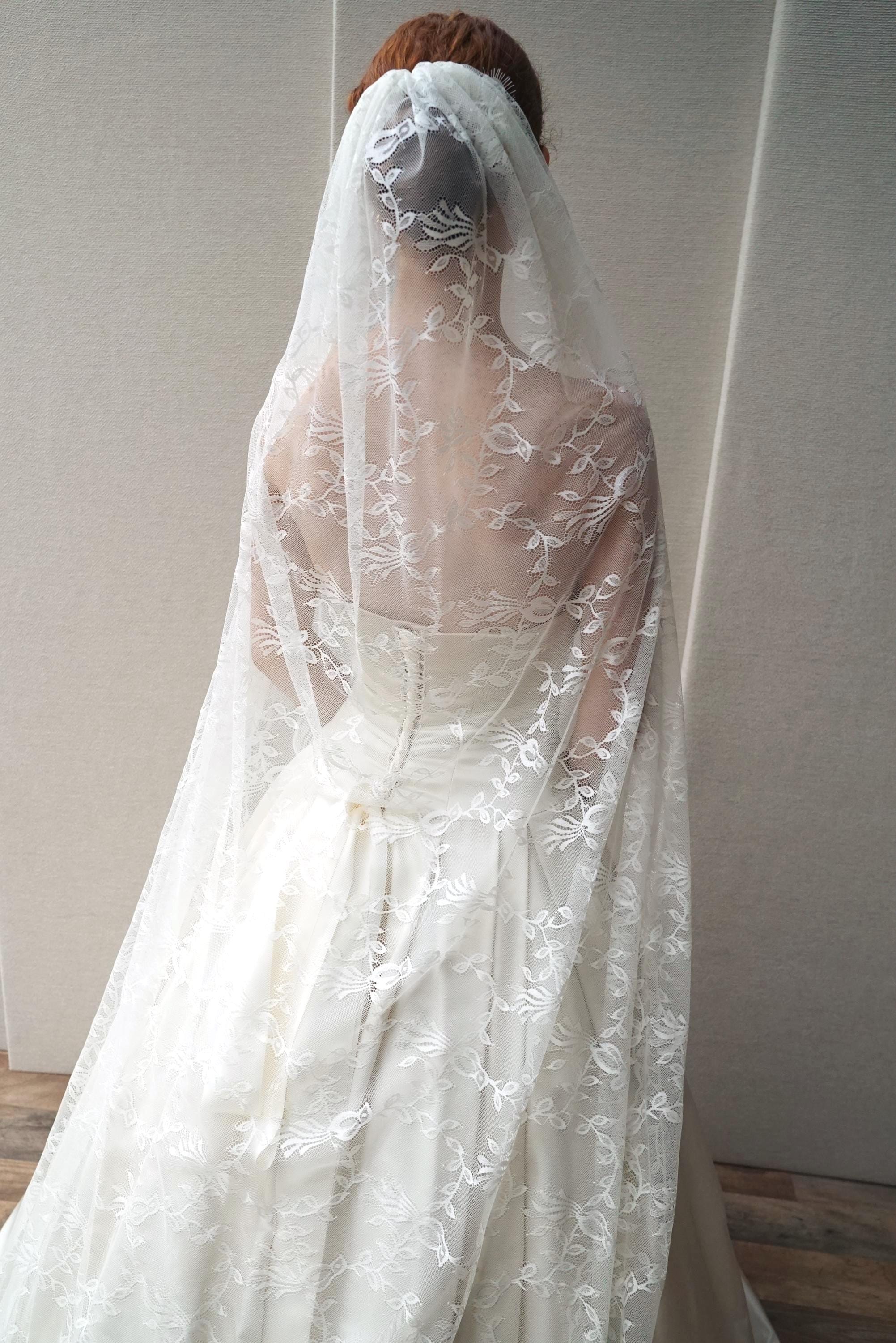 Lace veil, Chantilly lace veil, Cathedral length wedding veil ivory cream, Long veil in delicate lace with scalloped edge