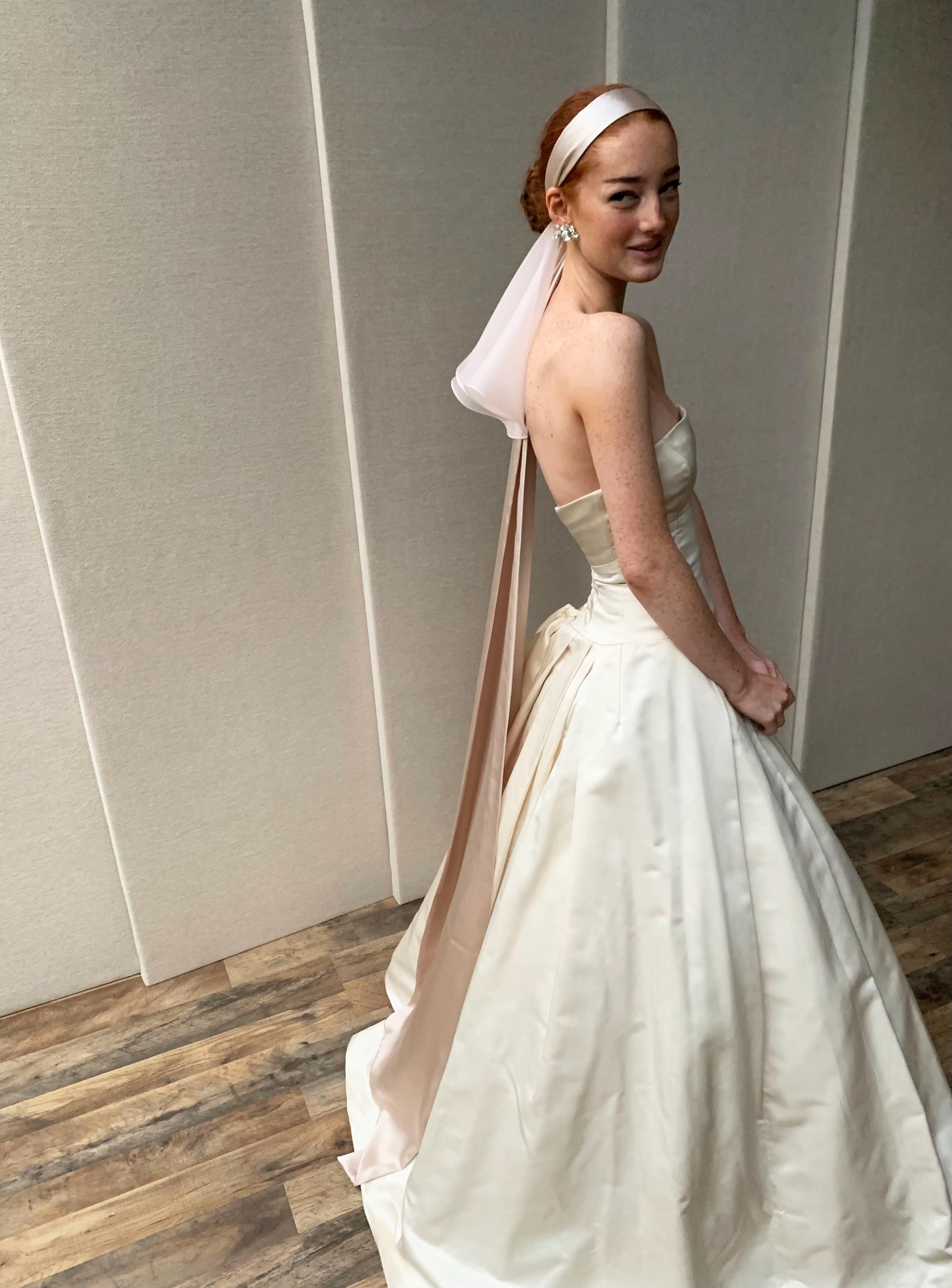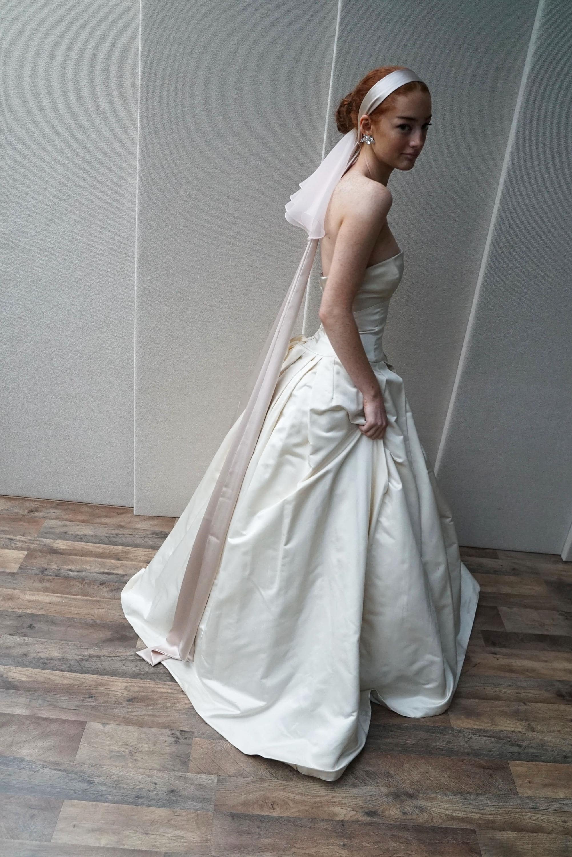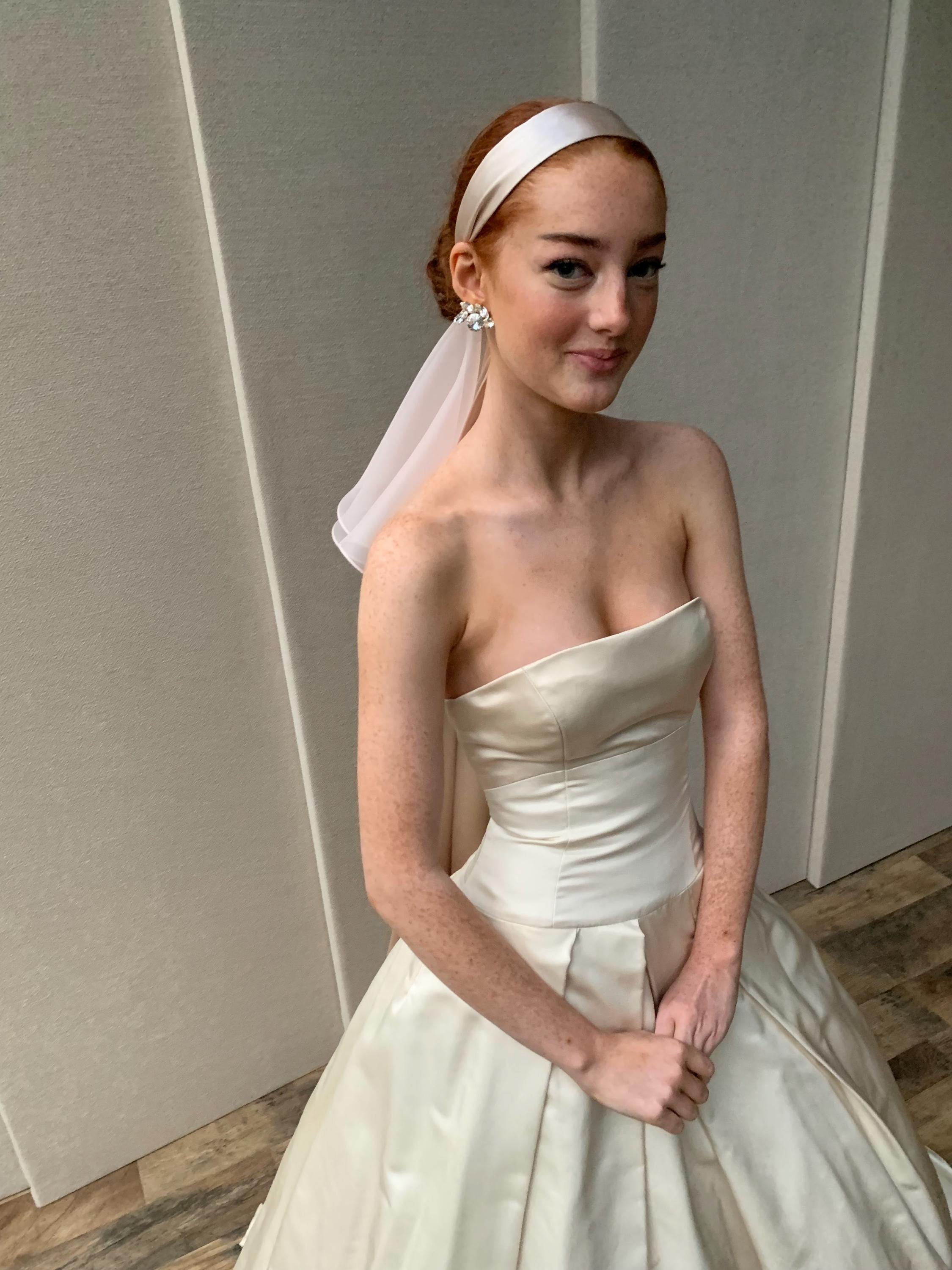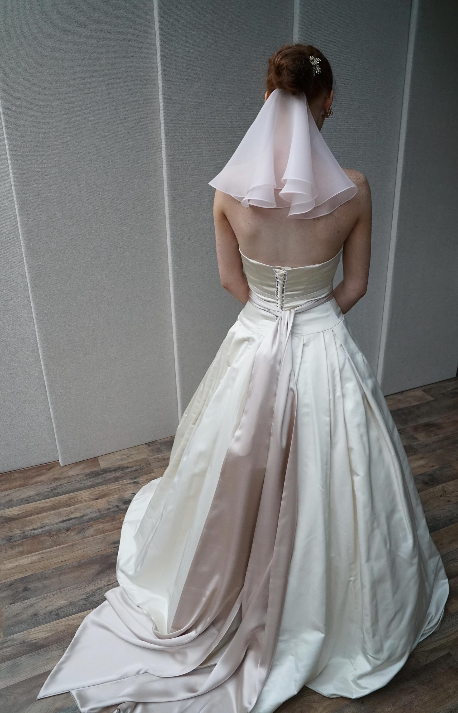Our "Under-The-Bun" veil got even shorter and sweeter. This fun goes-with-everything style looks so graceful and elegant. Beautifully hand-made with delicate 100% silk organza. The length of the veil measures 13" long. The veil is attached to a metal comb with the teeth pointing up for positioning the veil under the bun. If you would like to order the swatches of the silk organza colors please take a look at the listing below: