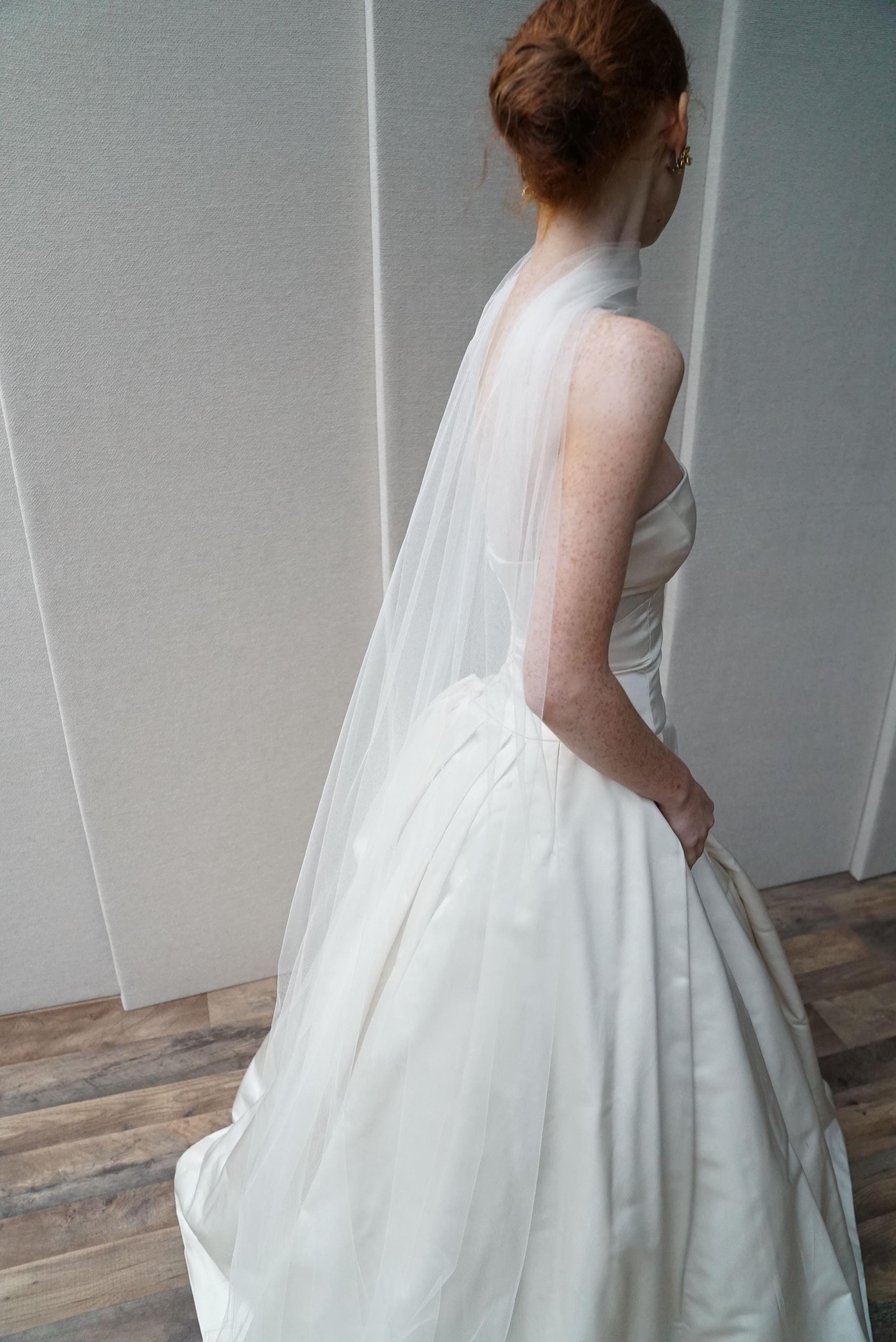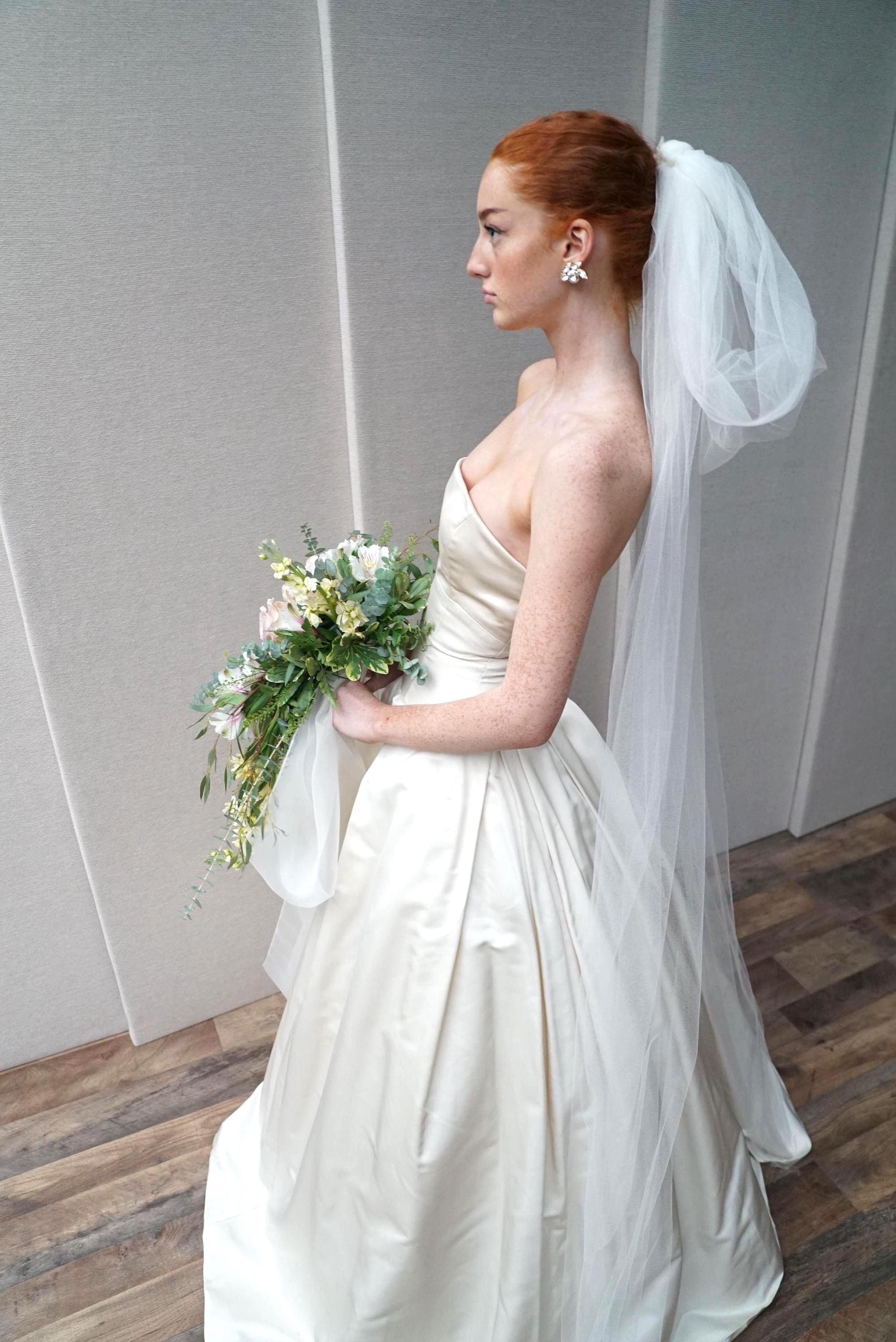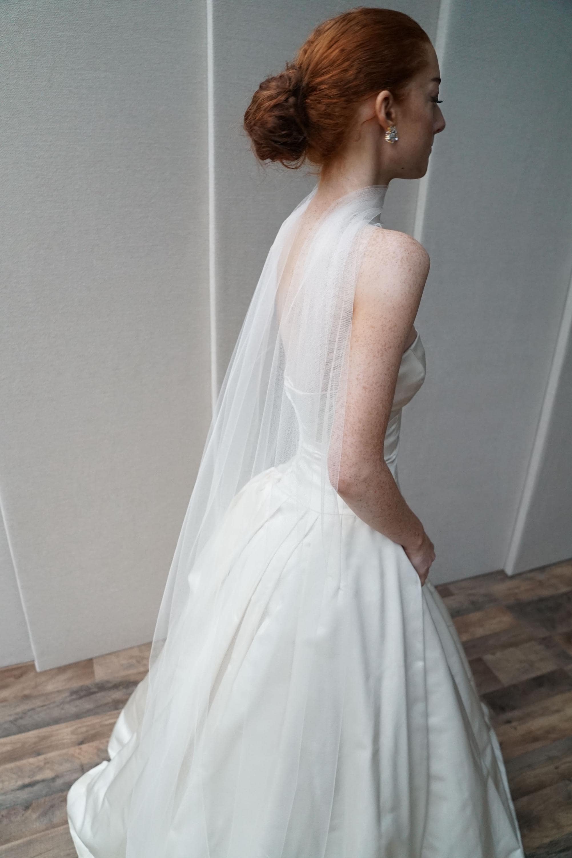 This exquisite stylish bridal shawl looks so fun and elegant. Beautifully hand-made with the finest 100% silk English tulle fabric that feels so airy, light and soft to the touch. You can wear this versatile scarf loosely draping down your back, wrap it around your shoulders and the neck or wear it as a bouncy hair bow on top of your head. You can even wear it as a sash tied around your waist. The length of the scarf in the photos measures 230" long. Shown in the photos in ivory color.