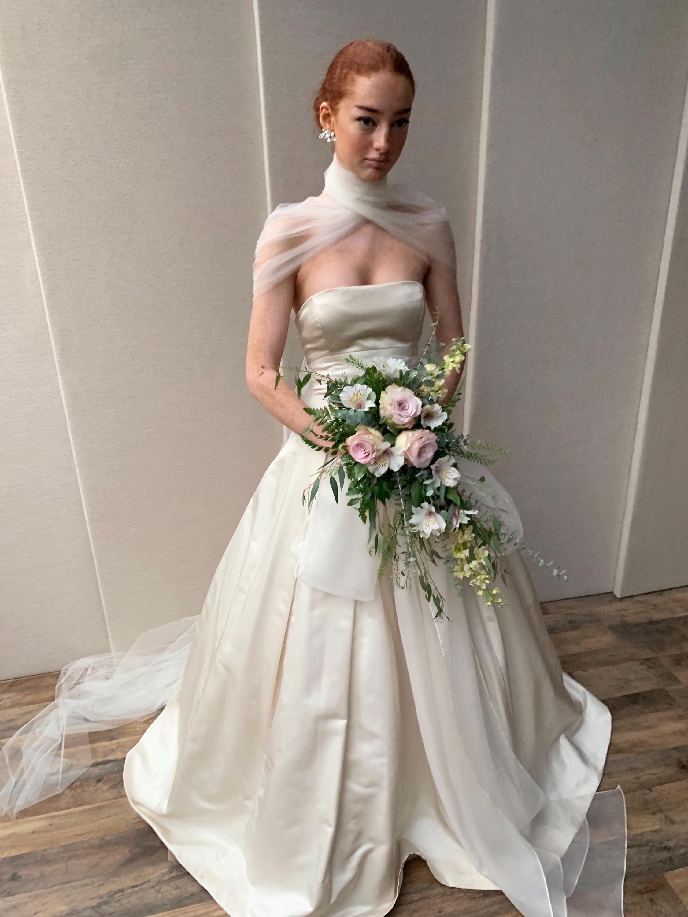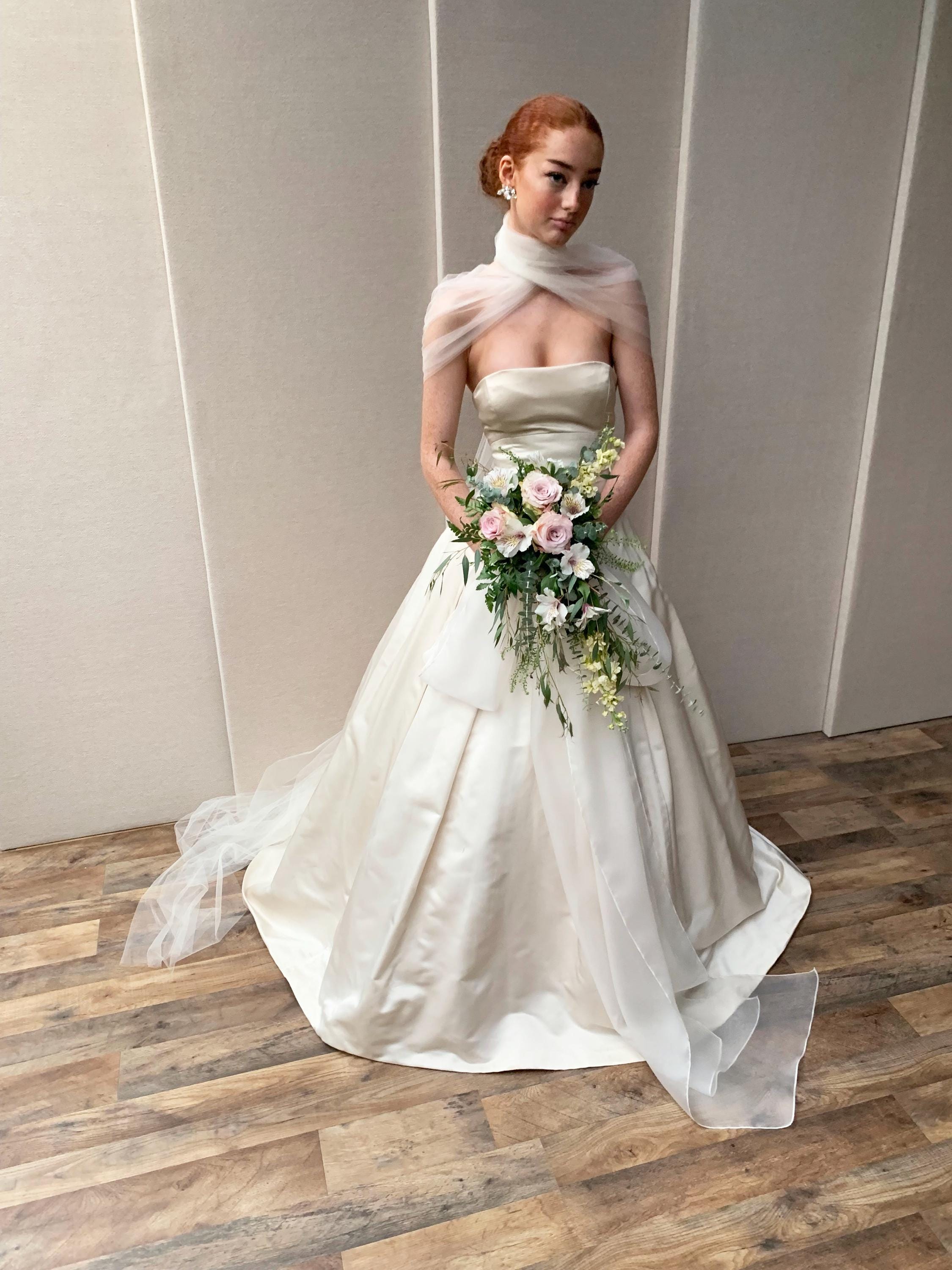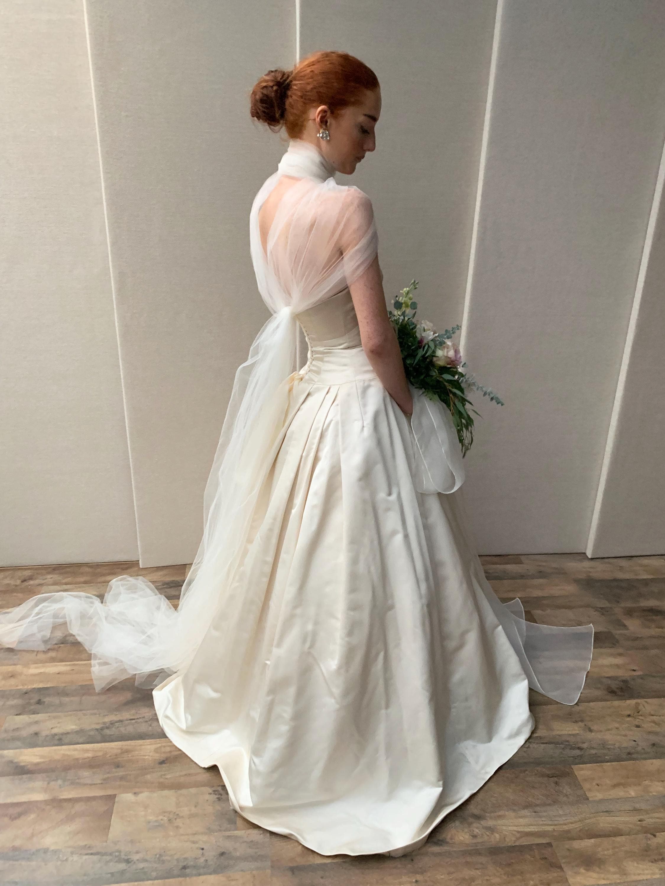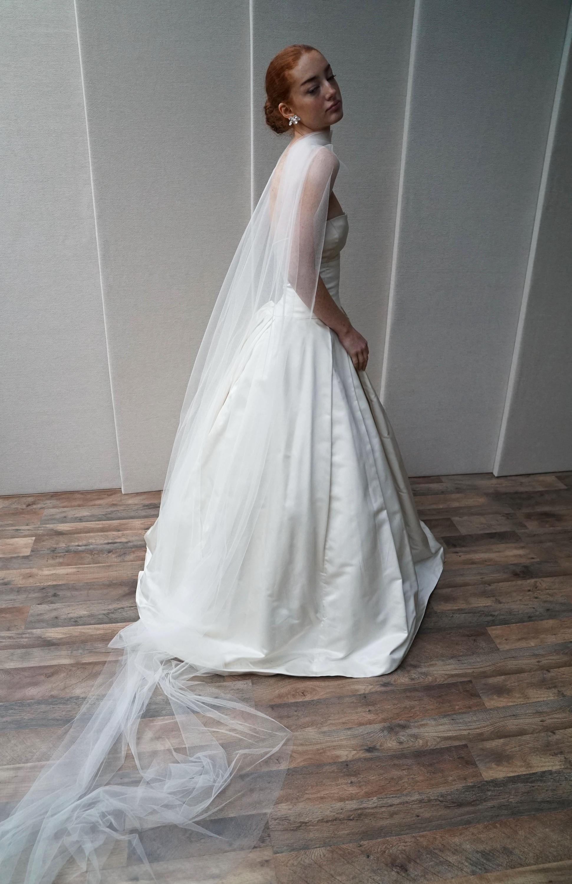 This exquisite stylish bridal shawl looks so fun and elegant. Beautifully hand-made with the finest 100% silk English tulle fabric that feels so airy, light and soft to the touch. You can wear this versatile scarf loosely draping down your back, wrap it around your shoulders and the neck or wear it as a bouncy hair bow on top of your head. You can even wear it as a sash tied around your waist. The length of the scarf in the photos measures 230" long. Shown in the photos in ivory color.