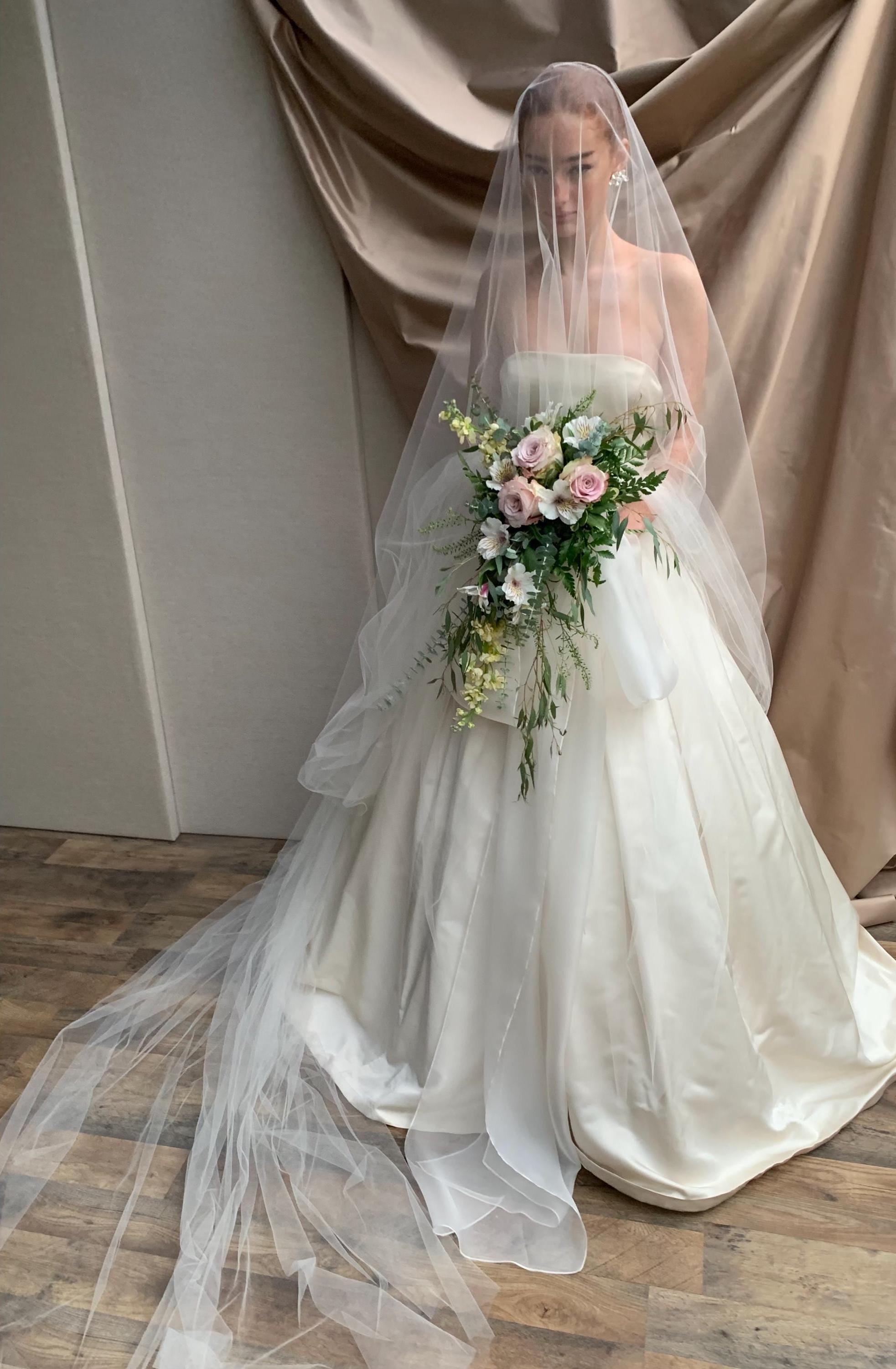 Silk veil, Bridal drop veil in silk tulle, Exquisite 100% Silk veil with floor length blusher, Couture Bridal veil sheer and delicate, Long