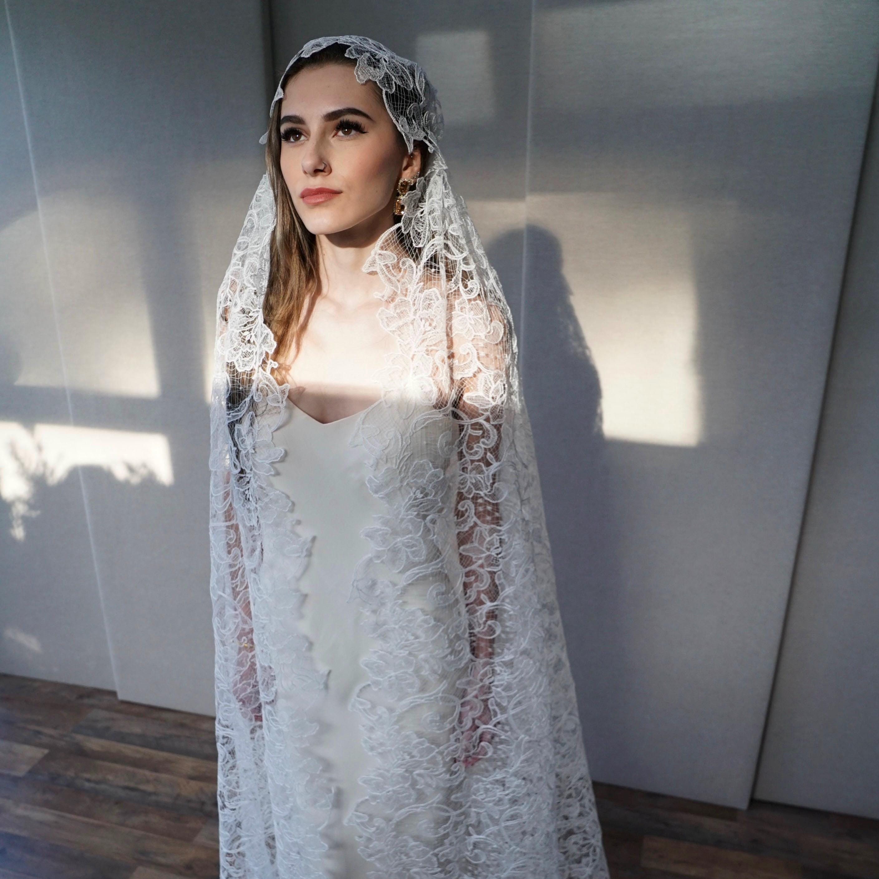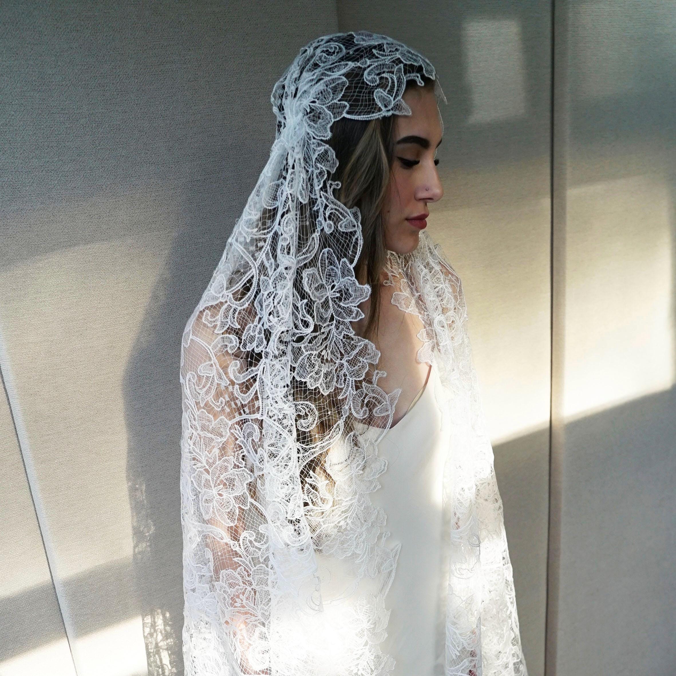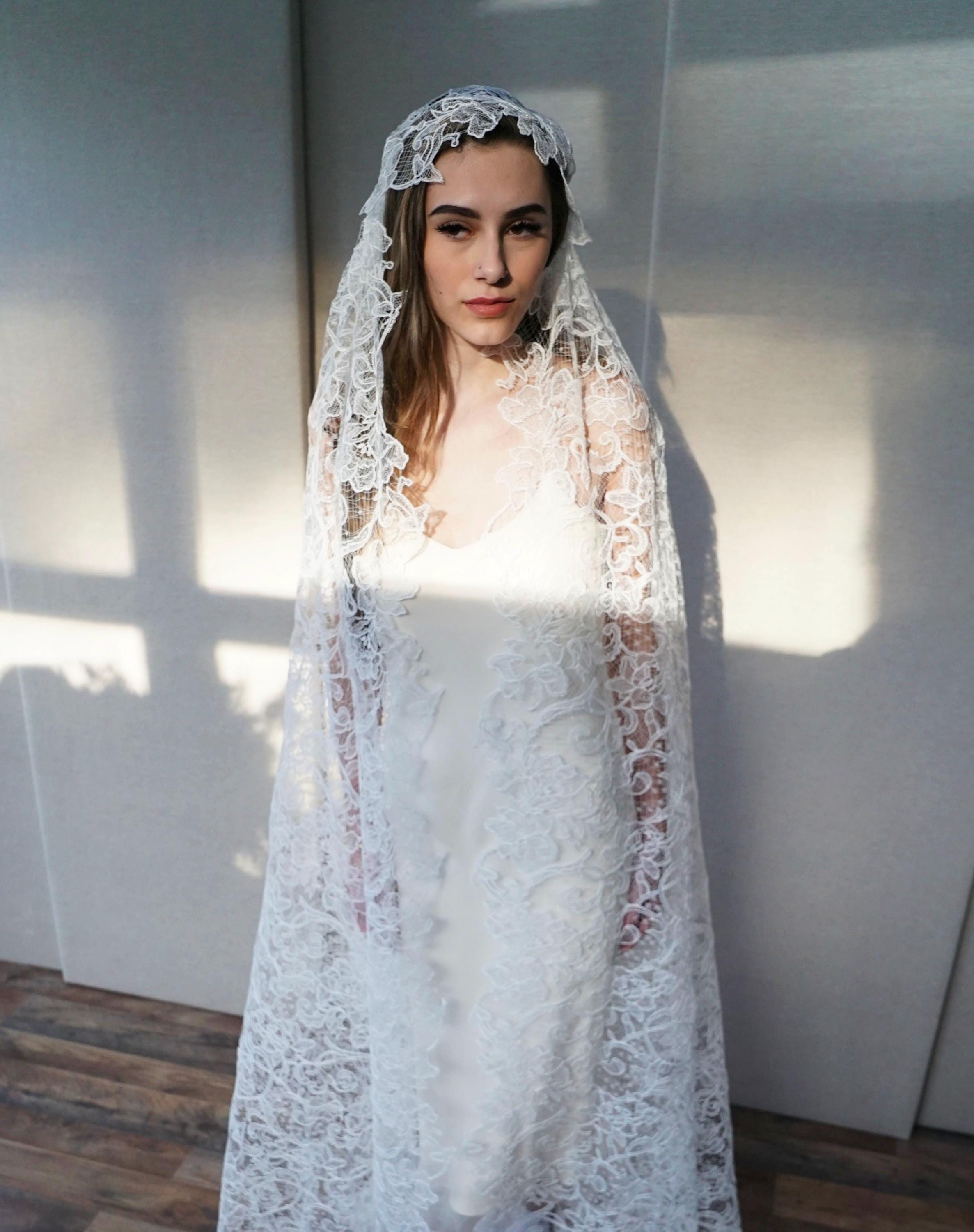 Juliet Cap Veil, Bridal veil long and delicate, Wedding veil Chantilly lace Vintage Style veil, Floor Length, Ballet Length