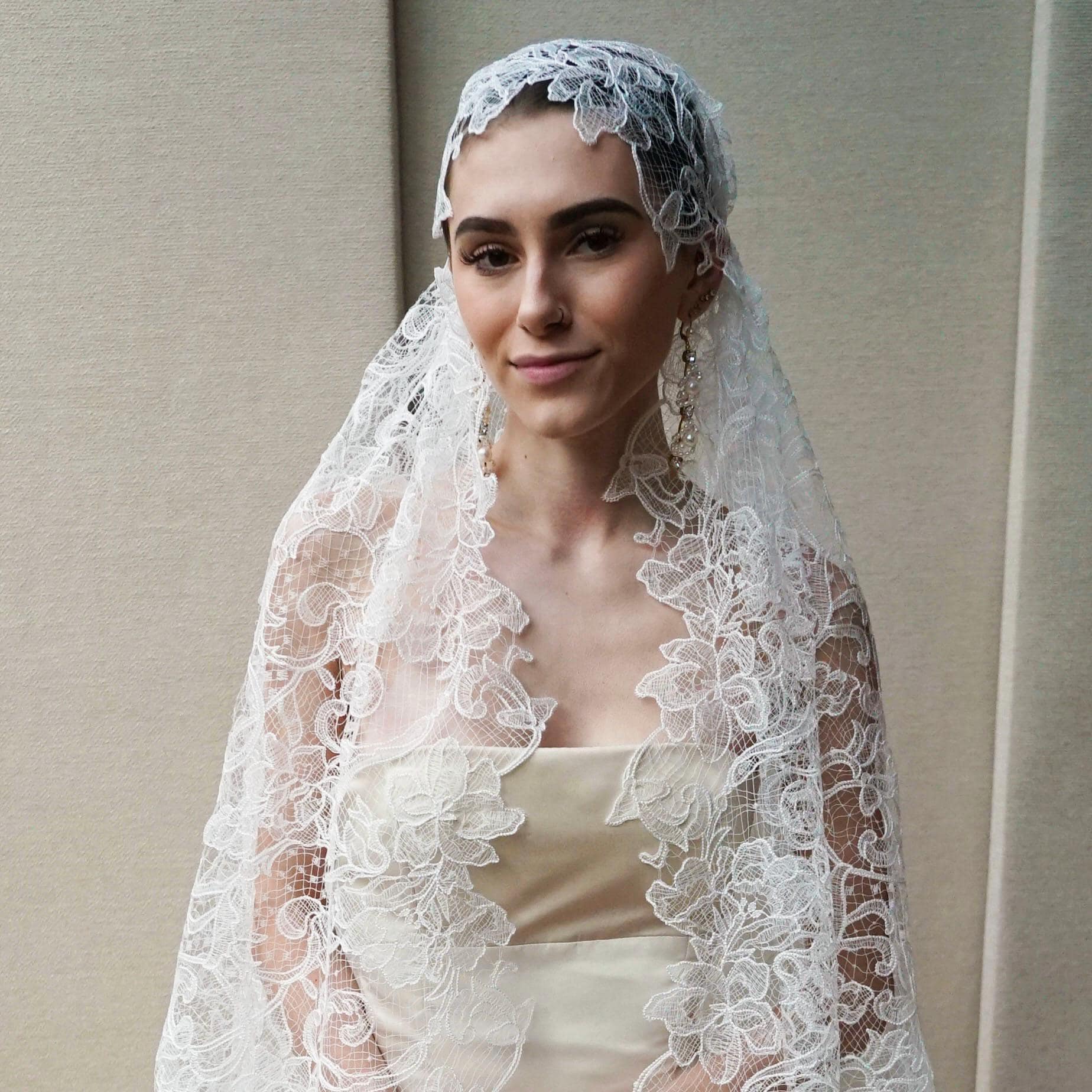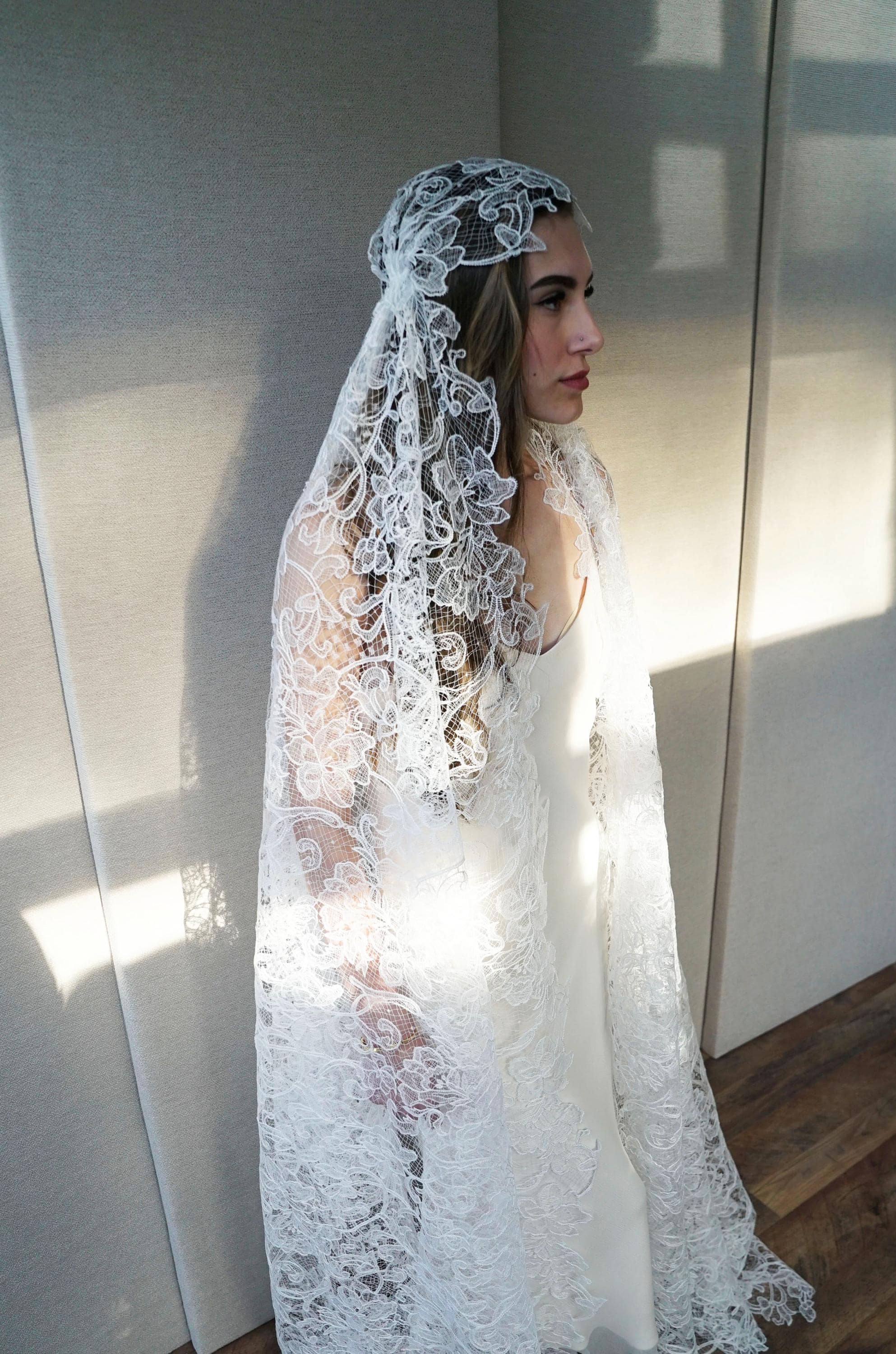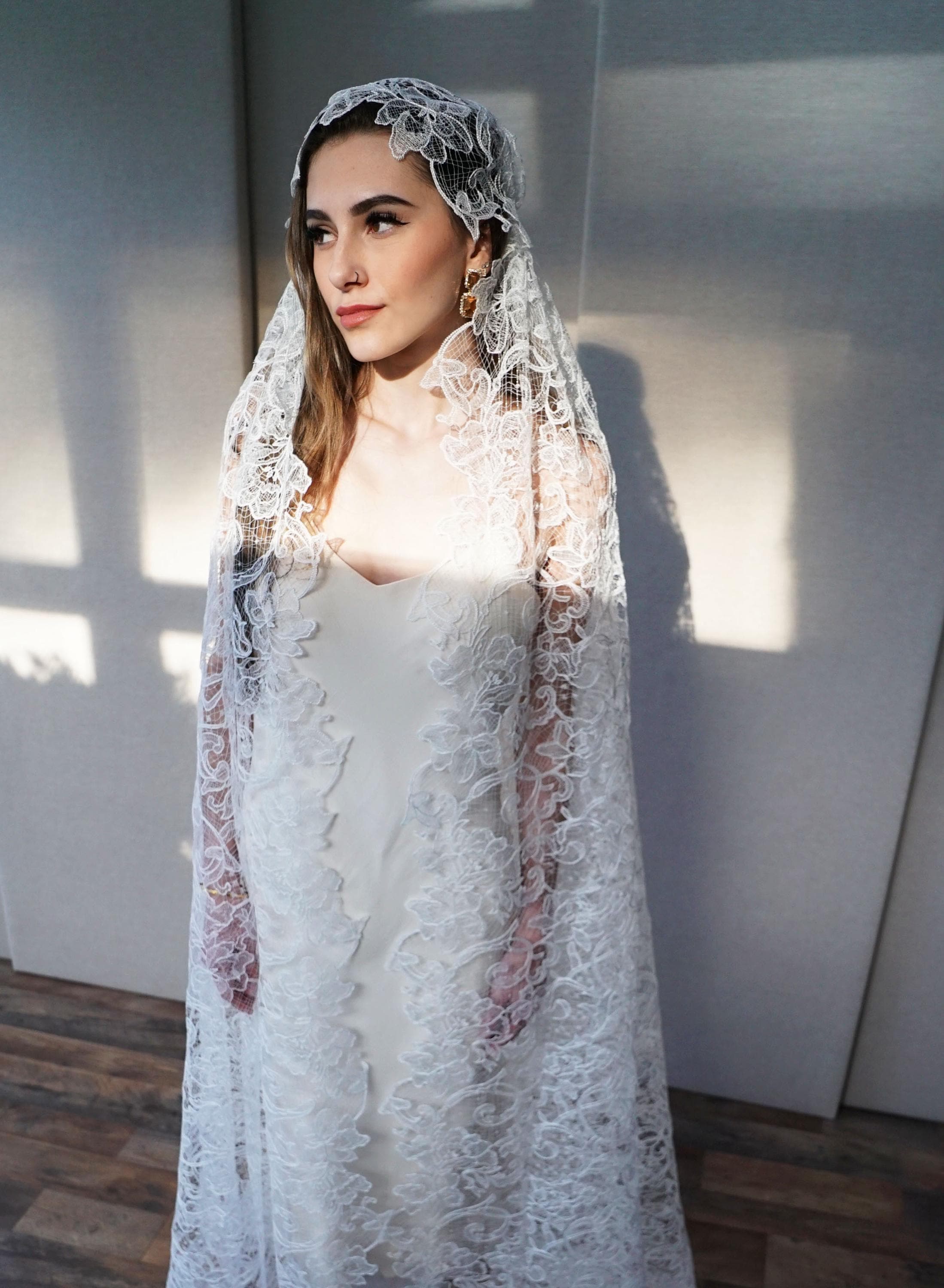 Juliet Cap Veil, Bridal veil long and delicate, Wedding veil Chantilly lace Vintage Style veil, Floor Length, Ballet Length