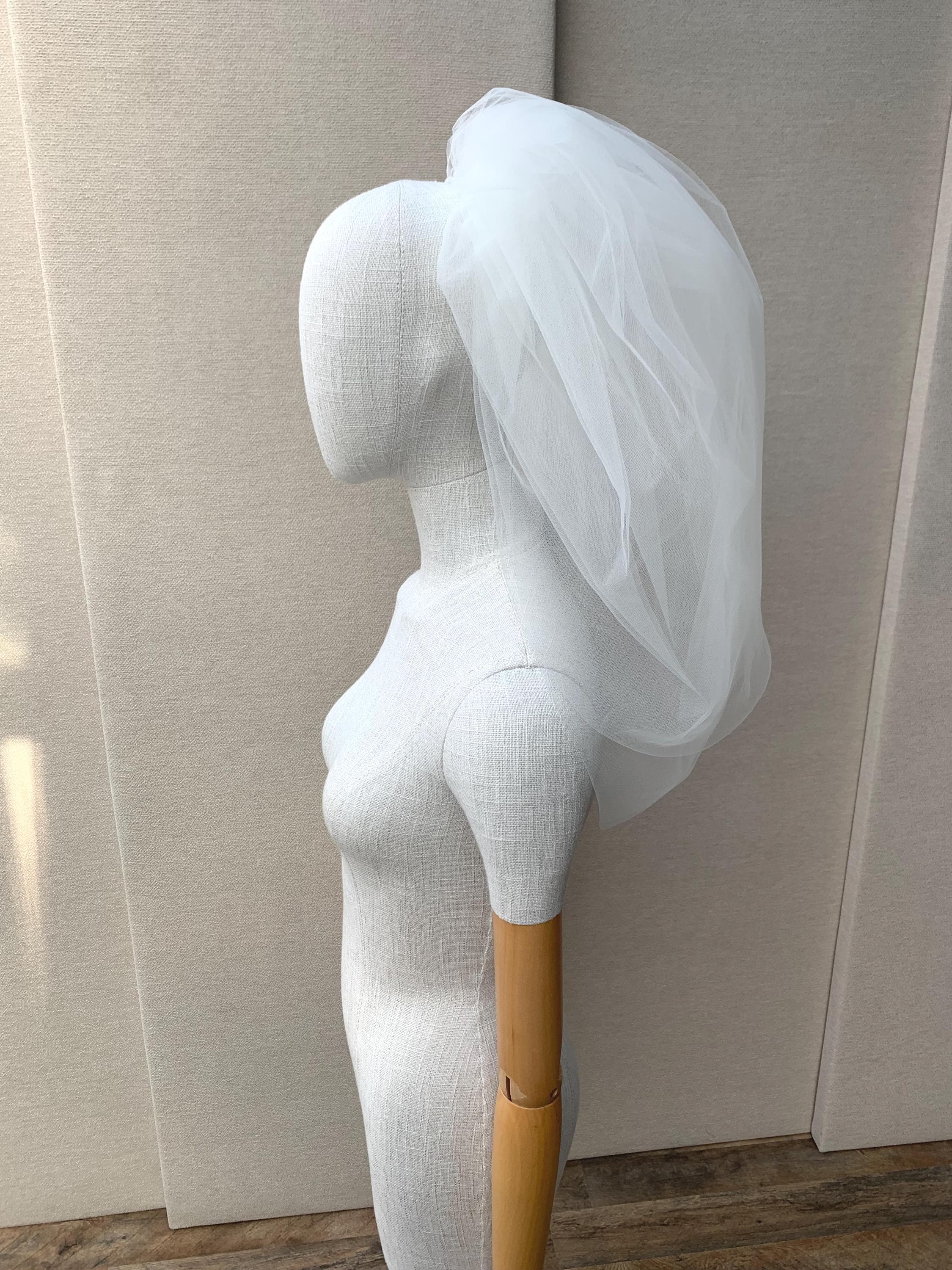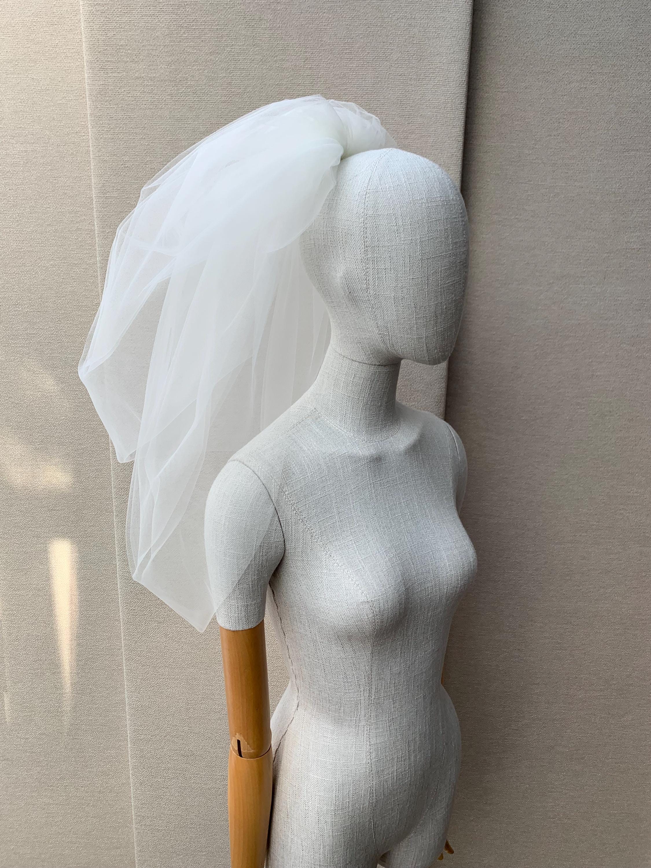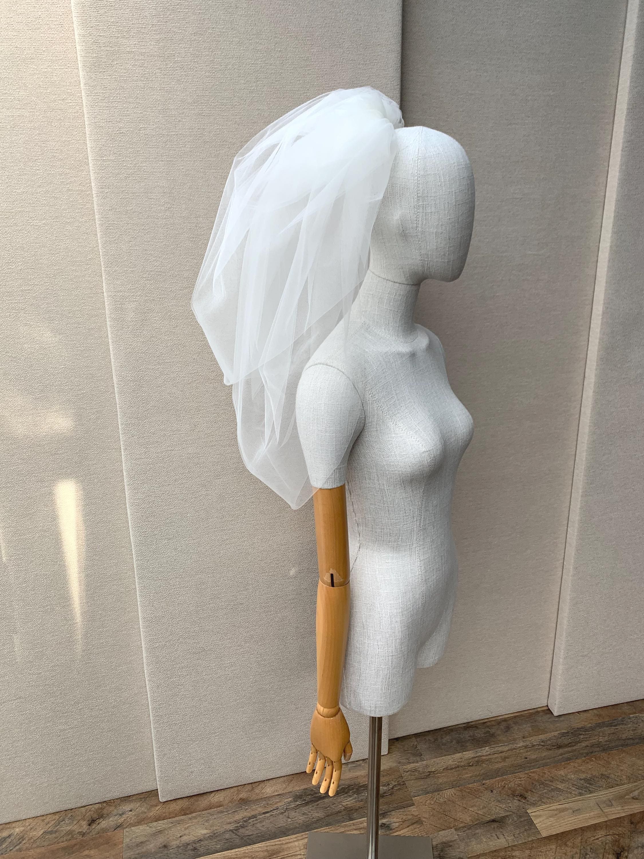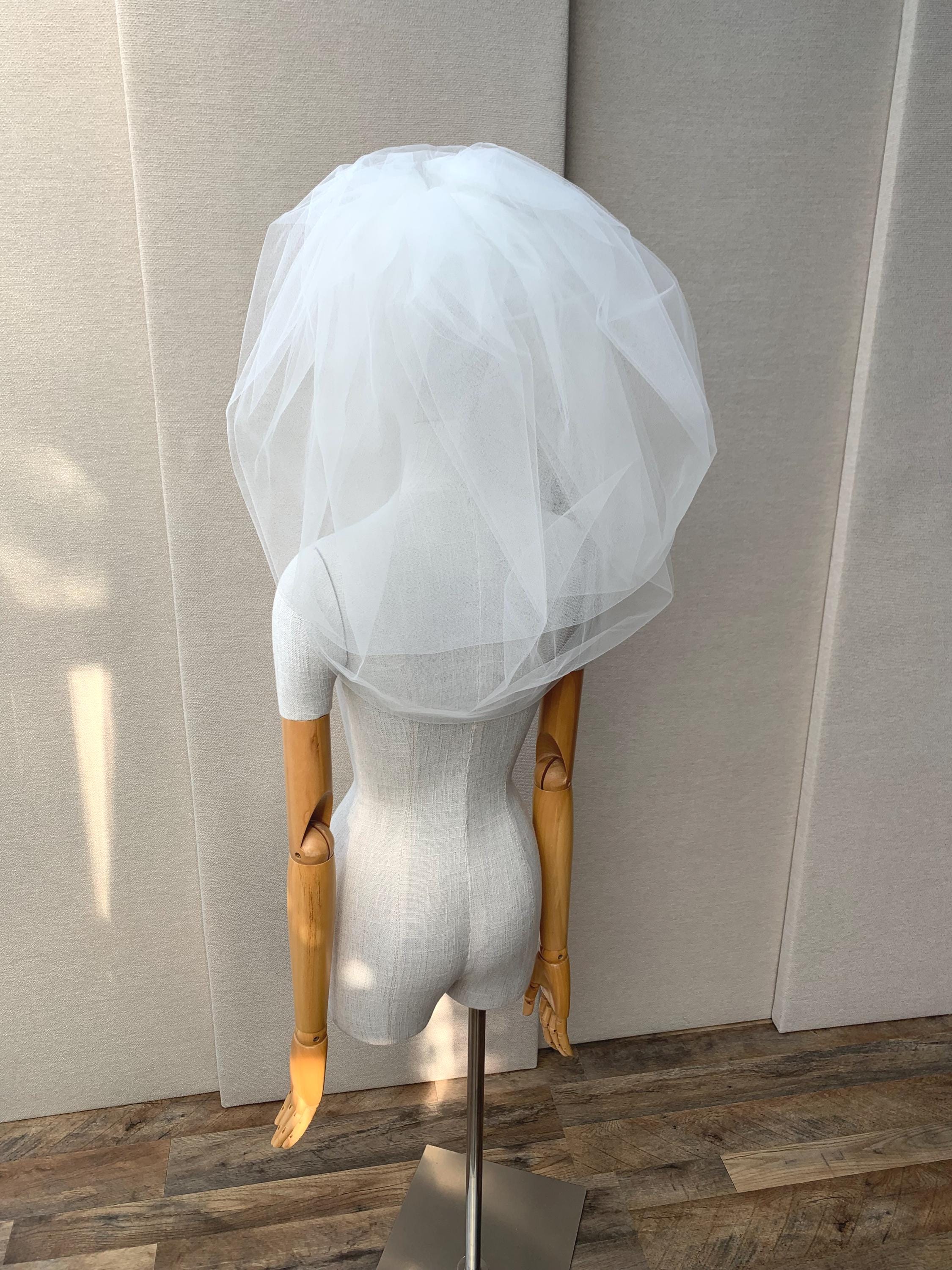 Bubble veil two-tier shoulder length, Short Puffy veil, Short Wedding veil with blusher, Full bridal puffed up veil