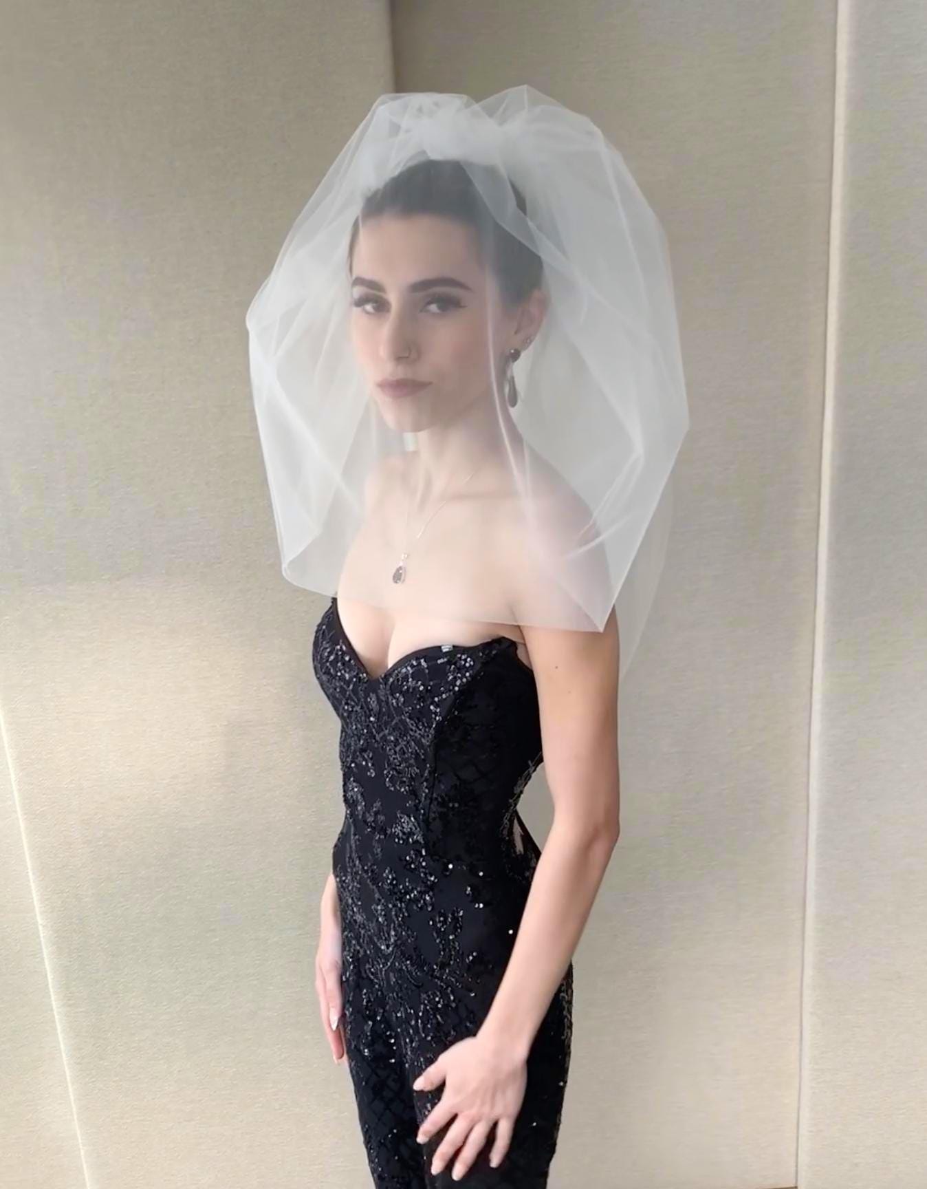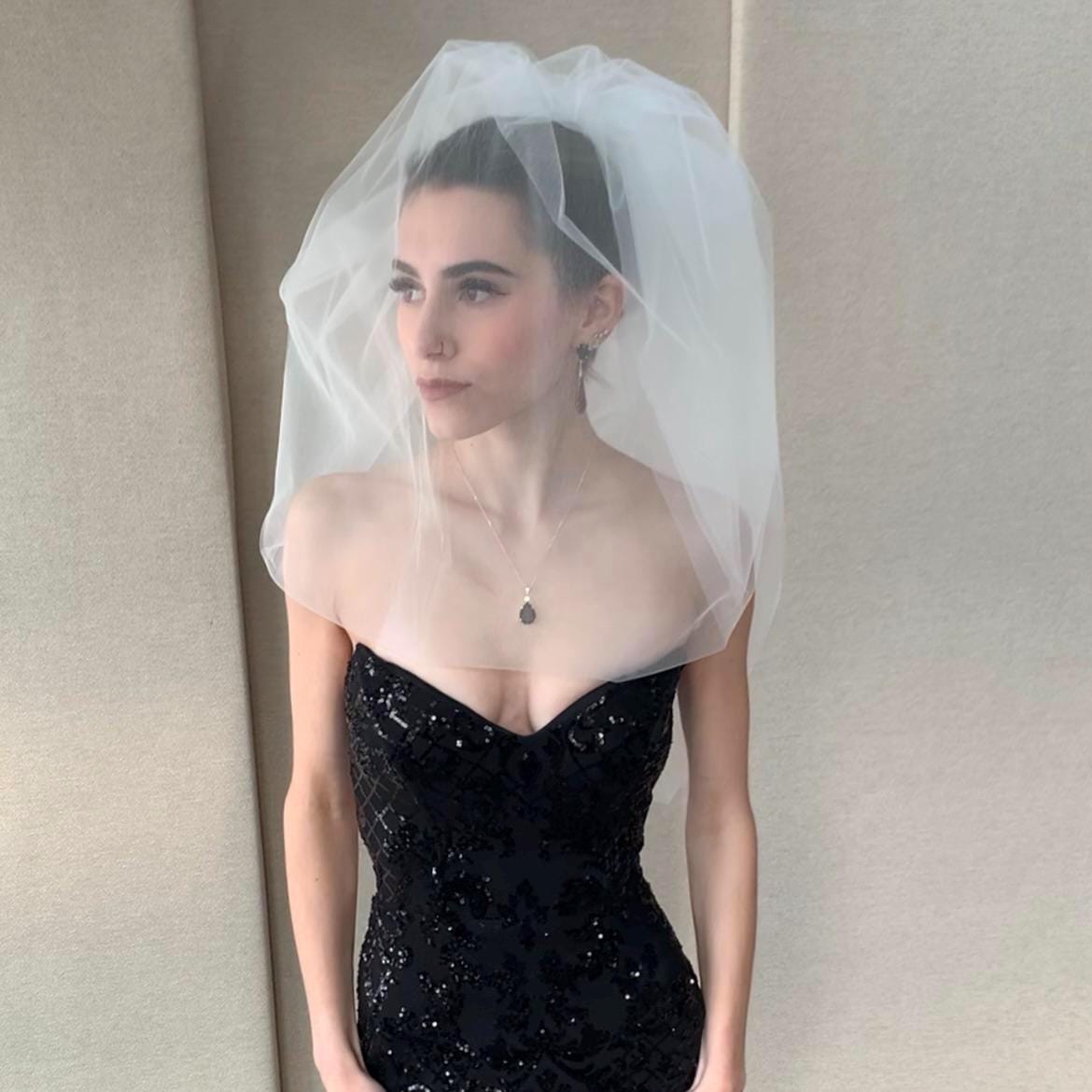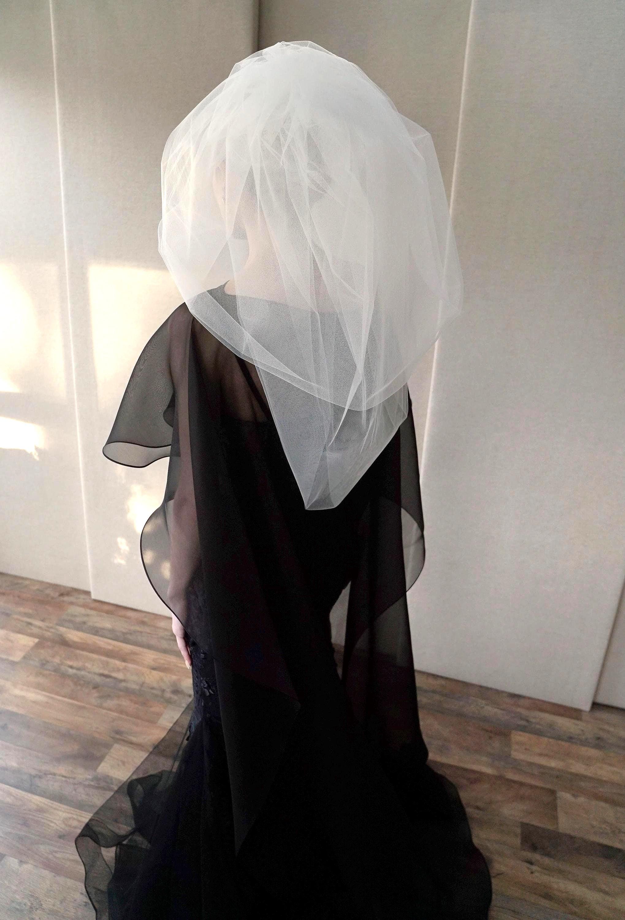 If you are looking to add some drama to your bridal outfit this double layer bubble veil is a perfect addition to your wedding dress. Made with seamless edge fine quality tulle. This veil can be worn with the blusher over your face or flipped back. It is secured with the comb on top of your head. Available in several colors to choose from. This veil measures 29" long in total length while the blusher measures 23" long. Shown in the photos with the ivory tulle.
