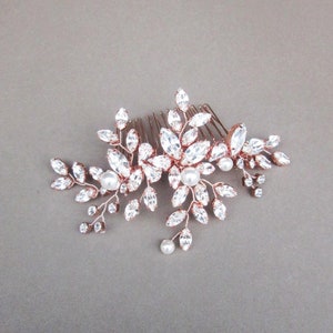 This delicate chain and pearl swag headpiece is made with Premium European Crystals and cultured freshwater pearls. The entire headpiece measures about 15" long as pictured in the last photo. This headpiece can be worn in the front, back or on the side of the head. Available in gold or silver finish.
