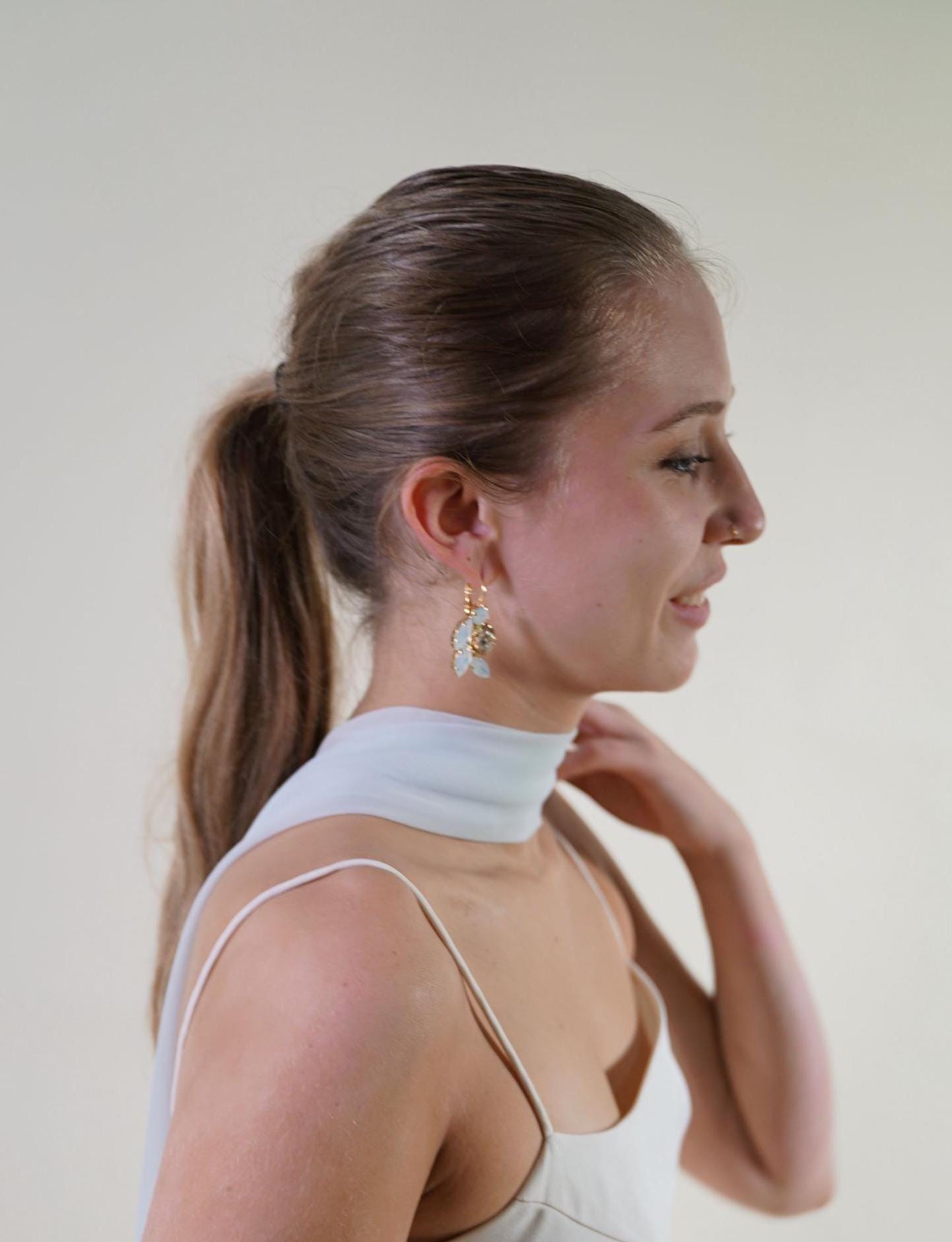 These beautiful opal earrings are made with Premium Quality European Crystal in opal and champagne mix. Lever back. Available in gold or silver finish.