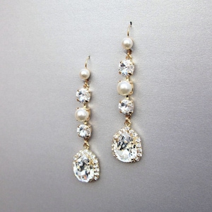 Crystal bridal earrings, Emerald drop earrings, Rhinestone earrings in gold or silver, Drop earrings, Wedding earrings