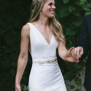 This is so pretty. I can't imagine how you get these stones to place on such a delicate ribbon. I think I'll have to have it tied on pretty tightly as it has some weight to it. I actually purchased this before I decided on a wedding dress. It was my inspiration piece. Looking forward to wearing it.
