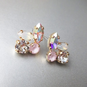 These elegant teardrop earrings are made with fine Premium European Crystal and crystal pearls. They feature beautiful pastel powder blue color crystal drops paired with white pearls. Available in gold, rose gold or silver finish and with white or ivory pearl. Post back with butterfly ear nuts. Shown in the photos with white pearls.