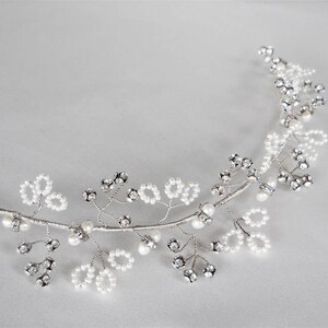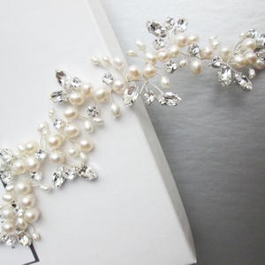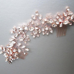 This leaf motif hair vine is made with beautiful sparkly Premium European Crystal in opal and clear crystal mix. This headpiece is super flexible and shapeable and can be worn as a headband or a hair vine. The hair vine measures 14" long and about 1" wide at the widest point. Available in silver, gold or rose gold finish and in opal/clear crystal mix or only clear crystal option. The hair vine comes with the bobby pins included.