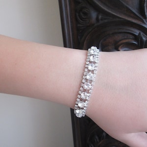 This lovely jewelry set is made with beautiful Premium European Crystal in white opal color and fine cultured freshwater pearls. The earrings measure 2 7/8" long and 7/8" wide. The bracelet measures 7/8" wide and the length is adjustable to fit most wrists. Available in gold, silver or rose gold finish. The earrings have post back with butterfly ear-nuts. Matching necklace available upon request.