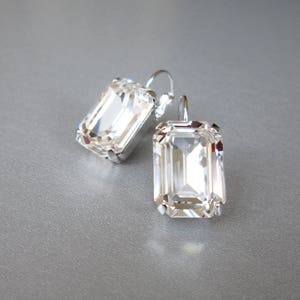 These beautiful dainty stud earrings are made with fancy emerald cut and marquise cut Premium Quality European Crystal in the warm shades of light and dark topaz. Available in gold, silver or rose gold finish.